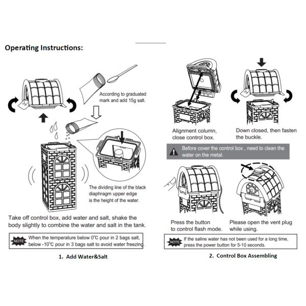3.As the water tank has sediment of the dissolved Mg bar, you should replace the saline water every 5-7days under 24Hrs working time condition. The saline water must be poured out if not used for more than one week.